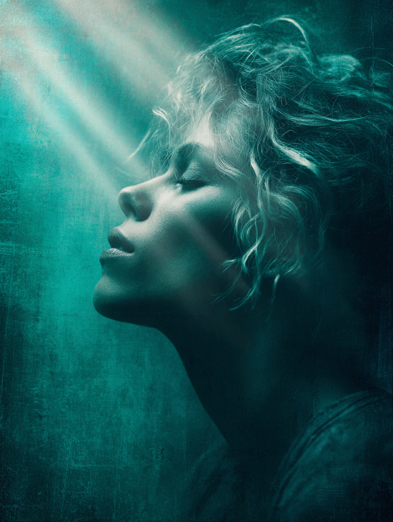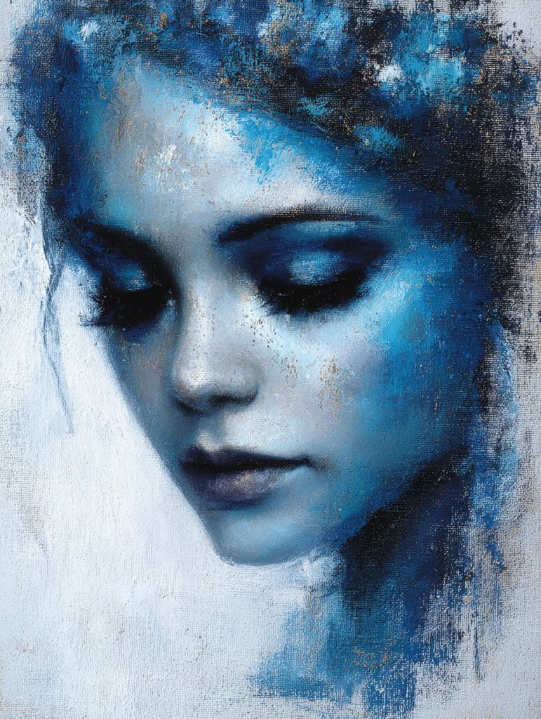 •❄️ a portrait of a woman, blue and silver hues → calm & mysterious